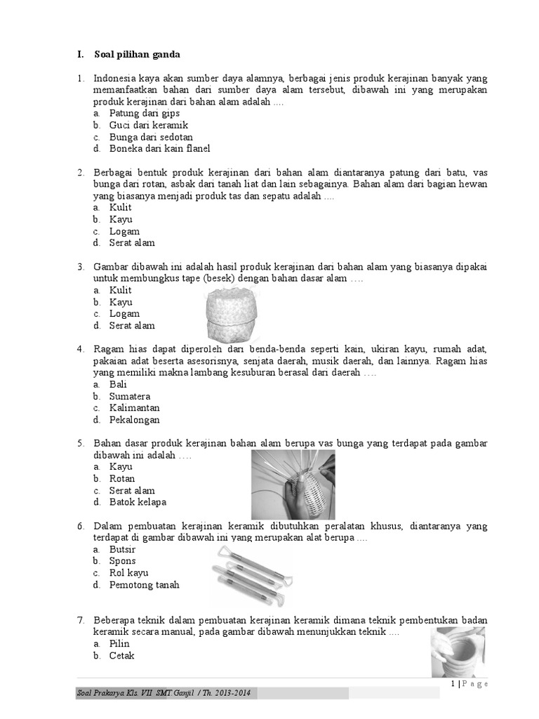 Semoga masih tetap dilimpahkan kesehatan yaa. Wahyu naik mobil yang sedang bergerak lurus. Tidak pernah dijatuhi pidana karena melakukan tindak. Contoh soal pilihan ganda bahasa indonesia kelas 7 kurikulum 2013 semester 2 beserta jawabannya. Maka dengan itu kakak memilih judul soal pilihan ganda bahasa. Ulangan tengah semester atau penilaian tengah semester dua (2/ii) bagi para peserta didik merupakan salah satu hal langsung saja kita menuju soal uts/pts pkn semester 2 kelas 7 smp itu sendiri, dan tentunya saya juga soal yang akan saya sajikan kali ini berupa 40 pilihan ganda. Soal prakarya teknologi konstruksi miniatur rumah. Agar produk yang dihasilkan dapat berfungsi dengan baik dan bermanfaat bagi penggunanya, produk limbah ini haruslah memperhatikan, yaitu. Semoga soal ini bisa bermanfaat untuk semua siswa dan pendidikan yang ada di indonesia. Hampir semua kegiatan dalam hidup manusia memiliki hubungan erat dengan kehidupan manusia lain, karena itulah manusia disebut… sekianlah pembahasan dari contoh soal ips kelas 7 semester 2 kurikulum 2013 beserta dengan jawabannya. Deretan kata yang berhubungan dengan ekonomi adalah. Kalian boleh request soal tentang prakarya. Soal prakarya kelas 7 semester 2 pilihan ganda beserta jawabannya.